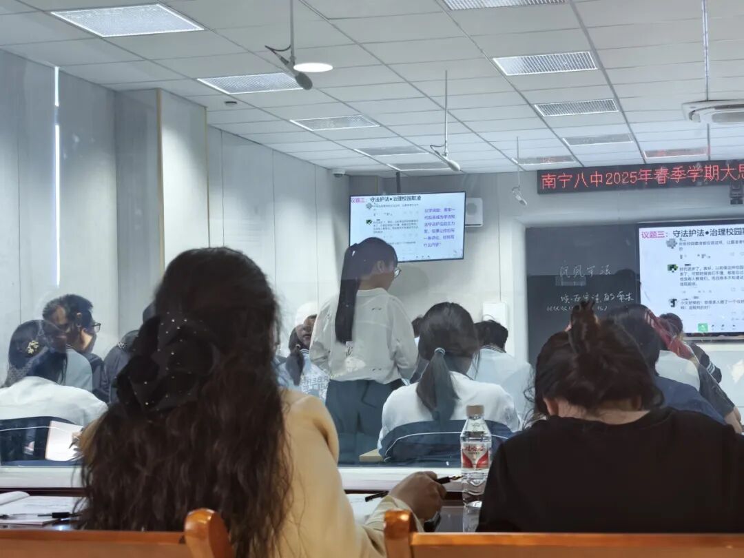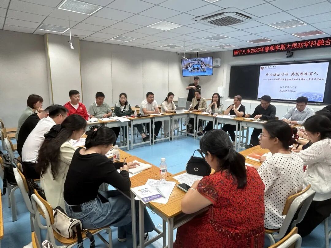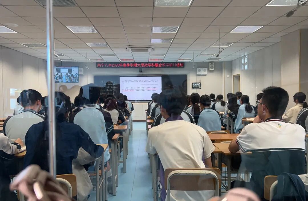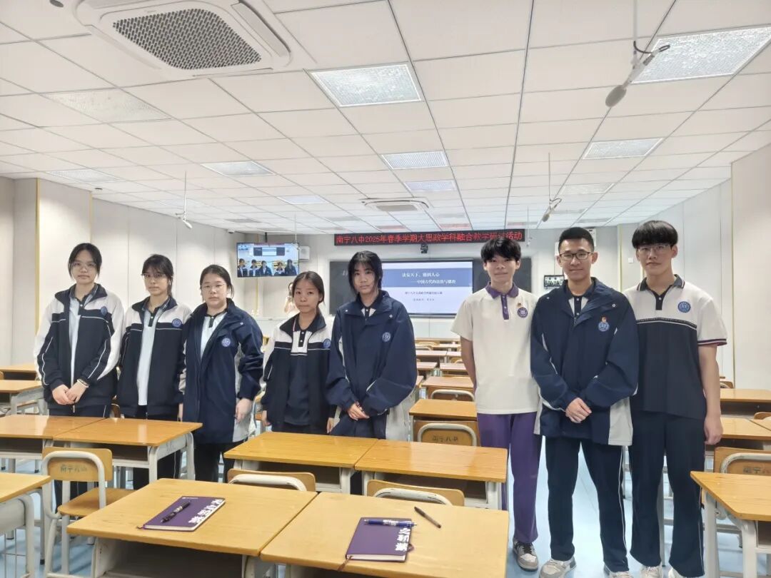 4月16日上午,南宁市第八中学举行大思政学科高二融合展示课,应南宁八中团队邀请,我校思政学科全体教师及学生代表积极参与南宁八中公开课,学生深入课堂与八中学生同上一堂课,与八中老师近距离接触交流。