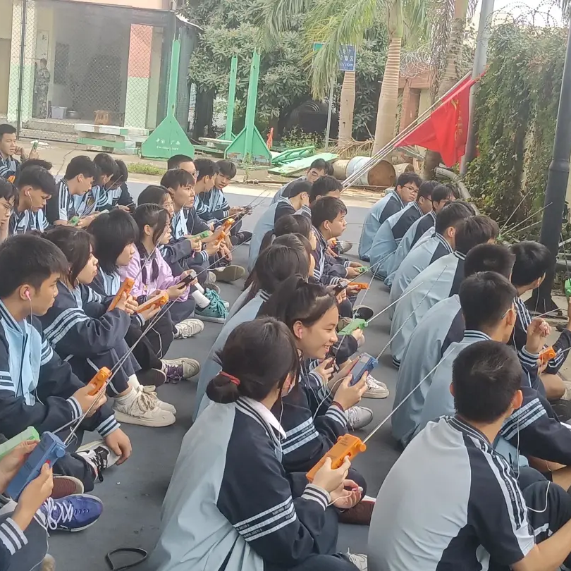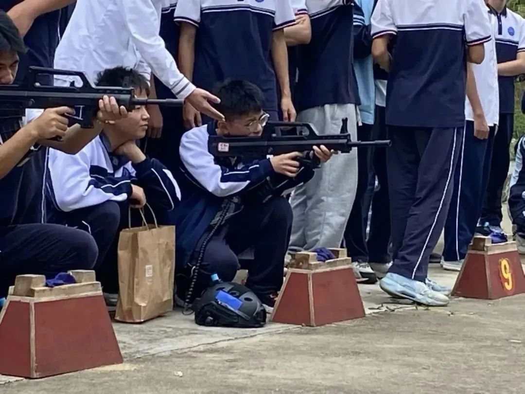 拿起枪,三点成一线,对准后扣动扳机。“砰”,击中。围观的同学斗志都被激发出来,一个接一个纷纷开始尝试。
